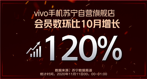 用戶方面,vivo iQOO此次雙十一大型促銷用實力增粉:vivo天貓官方旗艦店粉絲突破1700萬;vivo手機蘇寧自營旗艦店會員數(shù)環(huán)比10月增長120%;vivo官網(wǎng)累計訪問用戶量超2億人。