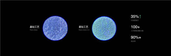 “星河入夢(mèng)”作為Reno5系列主打的全新配色,在上一代晶鉆工藝基礎(chǔ)上升級(jí)為星鉆工藝,晶體升級(jí)為規(guī)則的金字塔結(jié)構(gòu),顆粒更大,覆蓋比例更高,排列更緊密。讓Reno5系列的后蓋更通透,閃亮度相比上一代提升了35%。