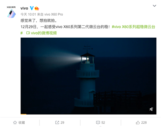 今天,vivo官方微博發(fā)布了X60系列第二代微云臺的宣傳視頻。視頻從恐高、笑場、滑板、跑動等典型生活場景舉例,定義了“抖動是拍照的天敵”。而vivo X60系列搭載的第二代微云臺技術(shù)可以很好的化解拍照時的抖動帶來照片模糊的問題,可以很好的“穩(wěn)住”生活中的常見場景,拍照更加清晰,大大提高出片率。視頻最后,還邀請大家一起在12月29日見證“微云臺的穩(wěn)”,再次強調(diào)了vivo X60系列新品發(fā)布會的日期,將用戶的期待值推向高潮。