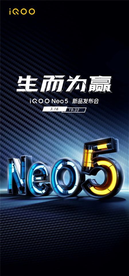 2021年3月4日, iQOO手機官方微博公布iQOO Neo5新品將于3月16日19:30正式亮相。iQOO Neo5定位“雙芯旗艦”,擁有驍龍870領(lǐng)銜的“性能超體”,將給予用戶旗艦級強悍性能體驗;獨立顯示芯片是新機的另一大亮點,它將為手機帶來優(yōu)秀的游戲視覺,以及穩(wěn)定、流暢且功耗更低的高幀游戲體驗。