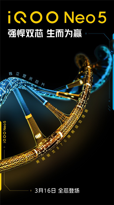 iQOO Neo5攜驍龍870和獨顯芯片于3月16日正式亮相