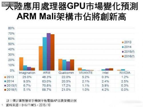 預(yù)期其市占將有所回溫,ARM的Mali架構(gòu)市占在2016年也將因此而微幅衰退。