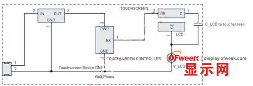 注意:在這種情況下,充電器干擾是指設(shè)備相對(duì)于地的外加電壓。這種干擾可能會(huì)因其在直流電源和直流地上等值,而被描述成“共模”干擾。在充電器輸出的直流電源和直流地之間產(chǎn)生的電源開關(guān)噪聲,如果沒有被充分濾除,則可能會(huì)影響觸摸屏的正常運(yùn)行。這種電源抑制比(PSRR)問題是另外一個(gè)問題,本文不做討論。