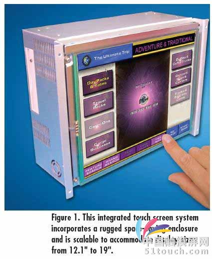 圖1:集成式觸摸屏系統(tǒng)包含一個耐磨損的狹小外殼,該系統(tǒng)可以升級以適應從12.1英寸到19英寸的顯示器尺寸。