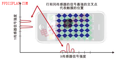 圖3:行和列傳感器的信號(hào)強(qiáng)度確定了觸控的位置